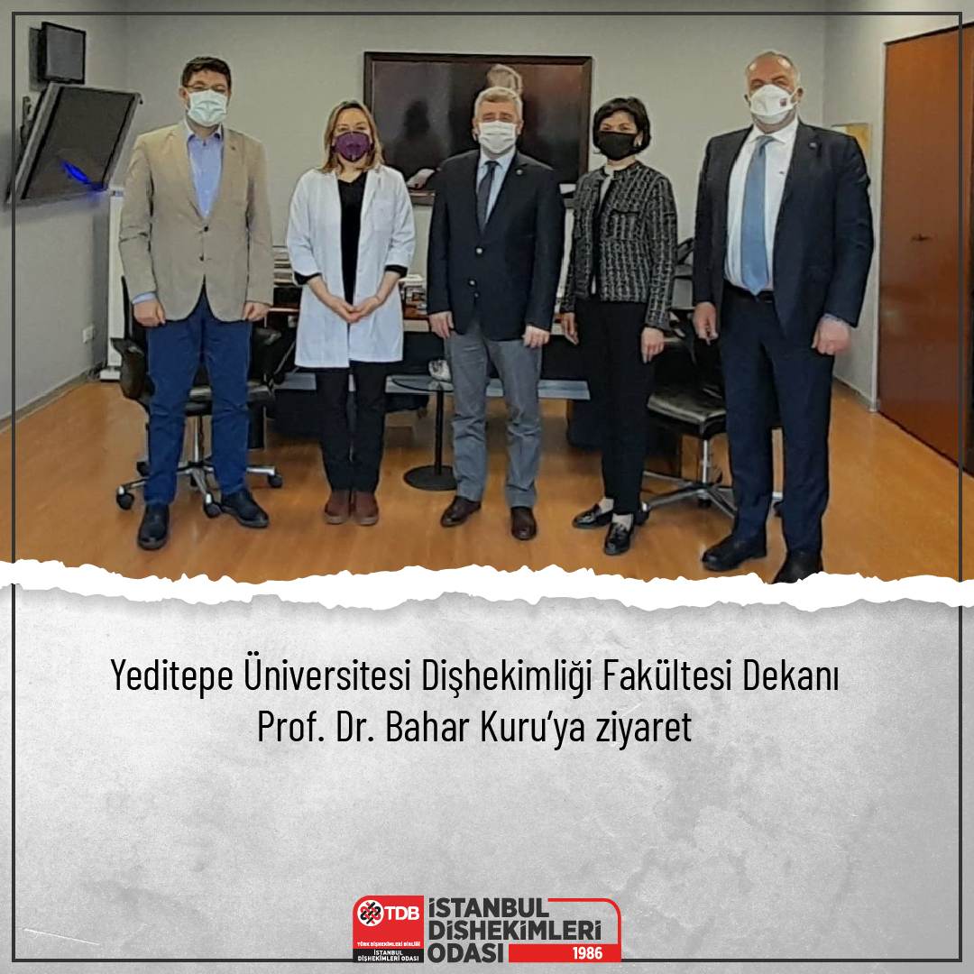 İstanbul Dişhekimleri Odası Başkanı Ali Gürlek, Saymanı Özgür Tutucu ve Yönetim Kurulu Üyesi Cenap Koşu, Yeditepe Üniversitesi Dişhekimliği Fakültesi Dekanı Prof. Dr. Bahar Kuru’yu ziyaret etti.