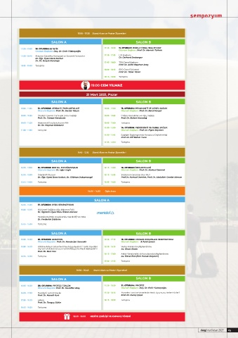 16:45 - 18:30 20. OTURUM: PROTEZ / EKLEM 17:30 - 18:30 21. OTURUM: PROTEZ