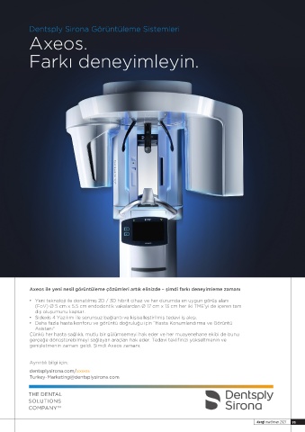 Axeos. – • (FoV) Ø 5 kapsar. • • axeos Turkey-Marketing@dentsplysirona.com THE DENTAL SOLUTIONS COMPANY TM dergi mart/nisan 2021 95