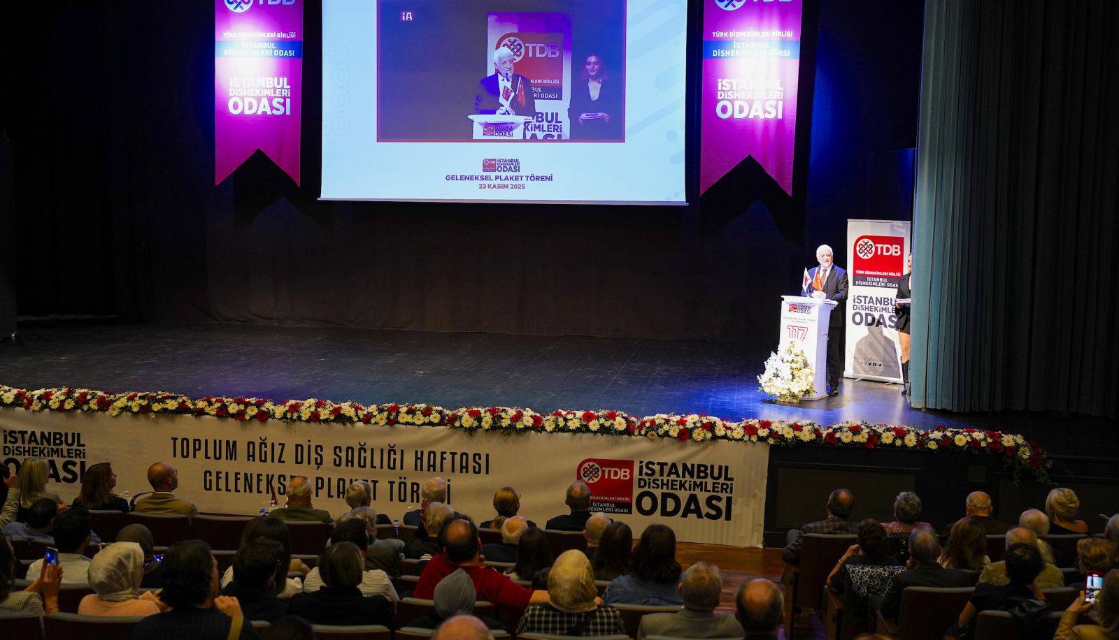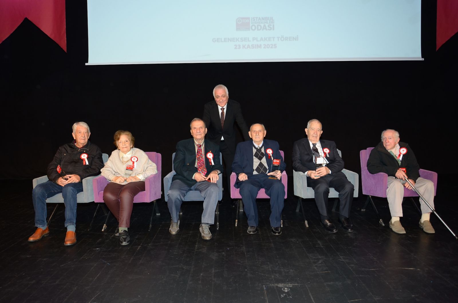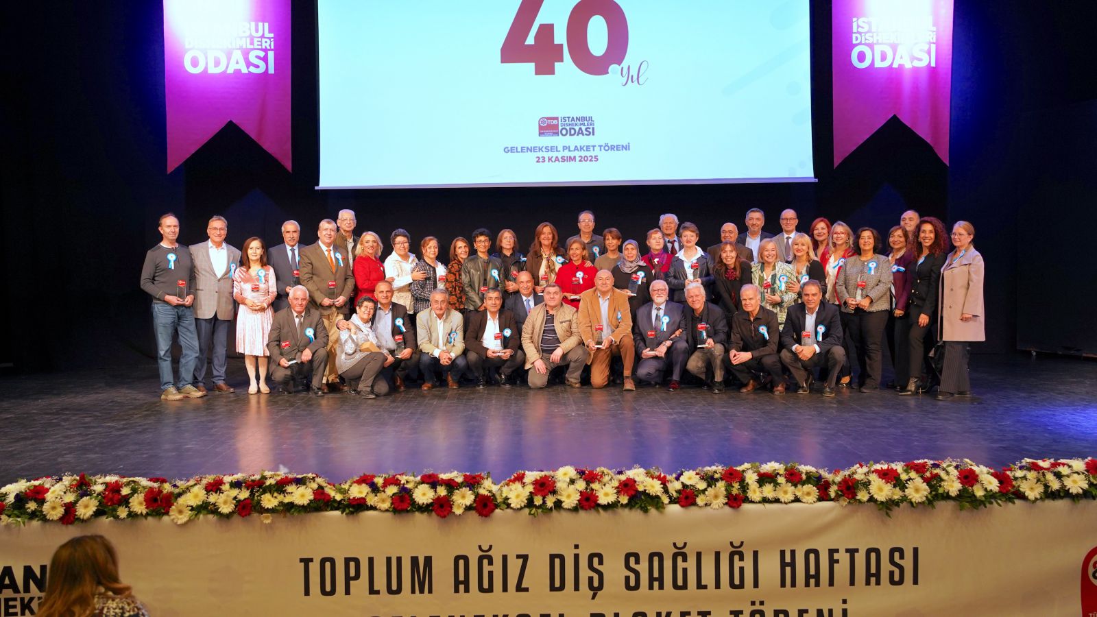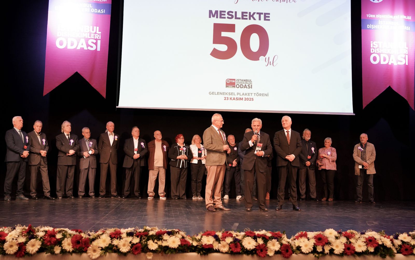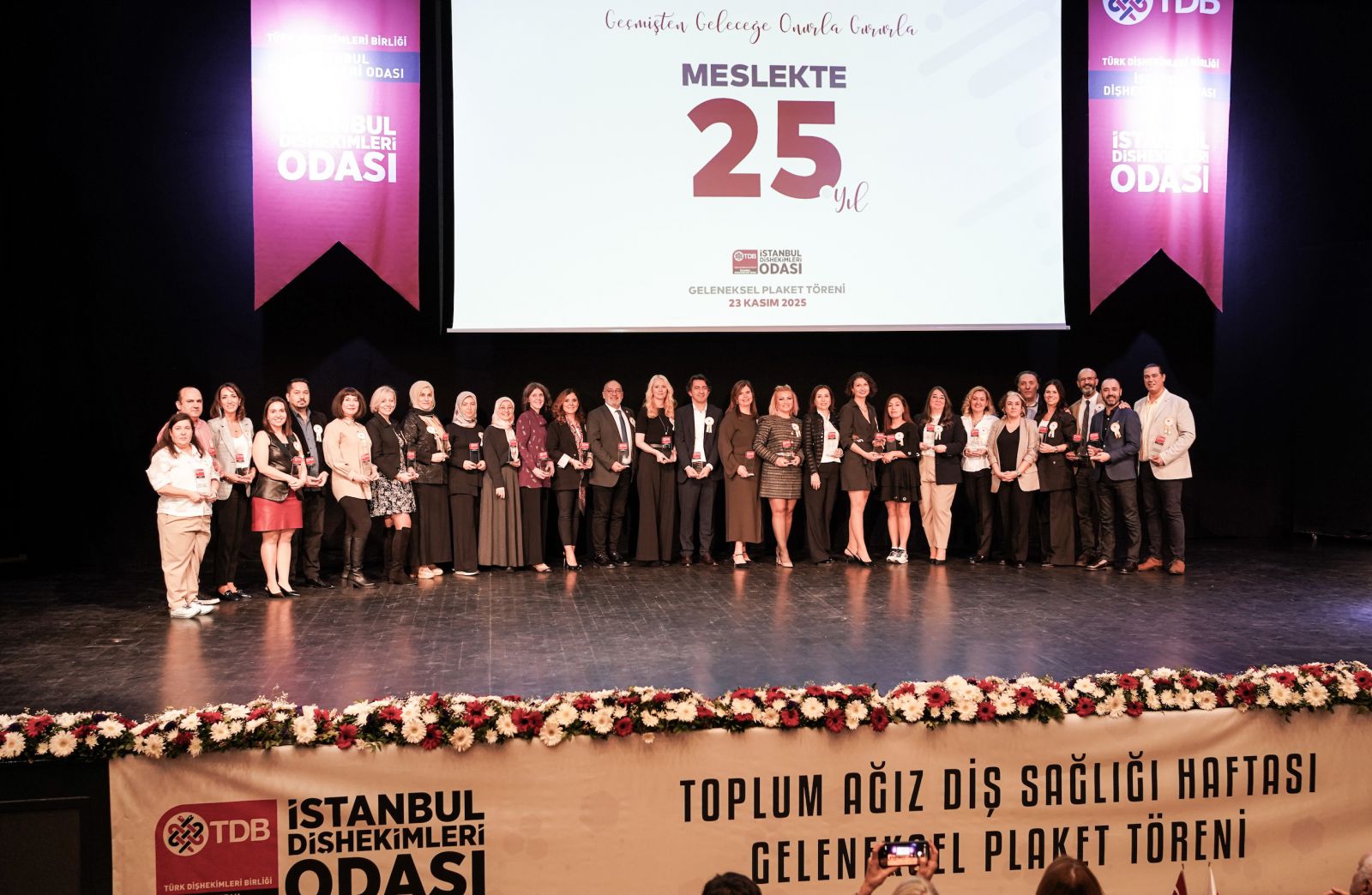 Meslek hayatlarında 25, 40, 50 ve 60 yılını dolduran dişhekimleri, 23 Kasım 2025 tarihinde Sarıyer Belediyesi Boğaziçi Kültür Merkezi’nde gerçekleştirilen törende plaketlerini aldı.